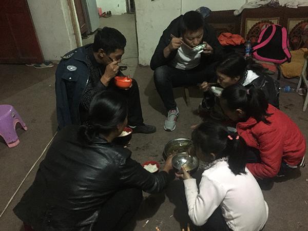 依火红敏一家在吃晚饭,菜是土豆煮酸菜。18时许,天色暗下来,到了吃晚饭的时候,一家6口人蹲在客厅的地上,吃白米饭和土豆炖酸菜,外加一点辣椒蘸汁。为何不上桌吃饭?依火哈古称“习惯了”。
