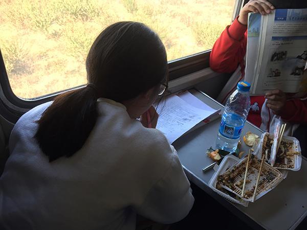 “慢火车”上的学生越来越多,不少学生会在车上看书、做作业。对于“慢火车”而言,月华站的特殊之处在于距离此处约800米的月华中学,每周五下午,这所中学的500-600名学生涌上“慢火车”,回到山区家里。