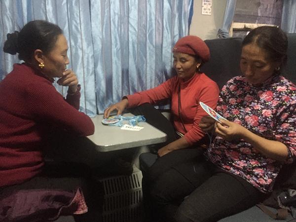 45岁吉来阿果莫和同村两位妇女都在做贩鸡生意,这次她们每人100只,每只赚1-2元的差价。三人在车上一边纳鞋底,一边聊家常。和阿火伍呷莫一样,45岁吉来阿果莫也长年做贩鸡生意,不过她贩的是小鸡。行李车上的300只小鸡属于吉来阿果莫和她的两位同村妇女,每人100只。车上,三人一边纳鞋底,一边聊家常。