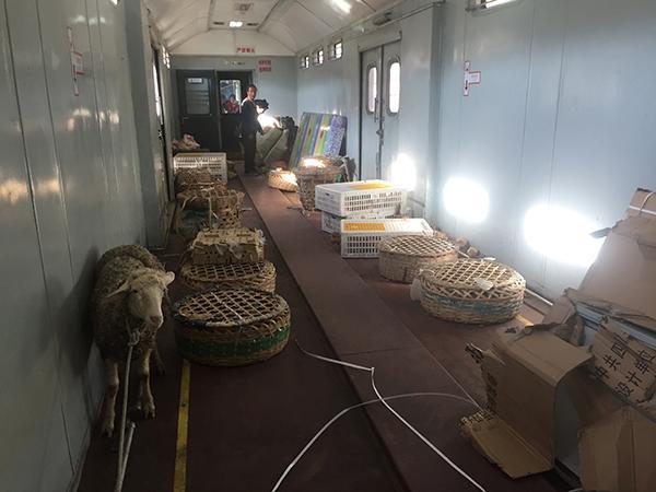 “慢火车”的第一节或最后一节车厢已改装为行李车,这是专门用来放村民携带的鸡、鸭、鹅、猪、羊等活物。去年,“慢火车”迎来“大变身”,5-11节车厢拆掉两排座位,改造出大件行李区,方便乘客堆放货物;每趟“慢火车”的第一节或最后一节改造成行李车,专门用来放乘客携带的鸡、鸭、鹅、猪、狗、羊等活物。