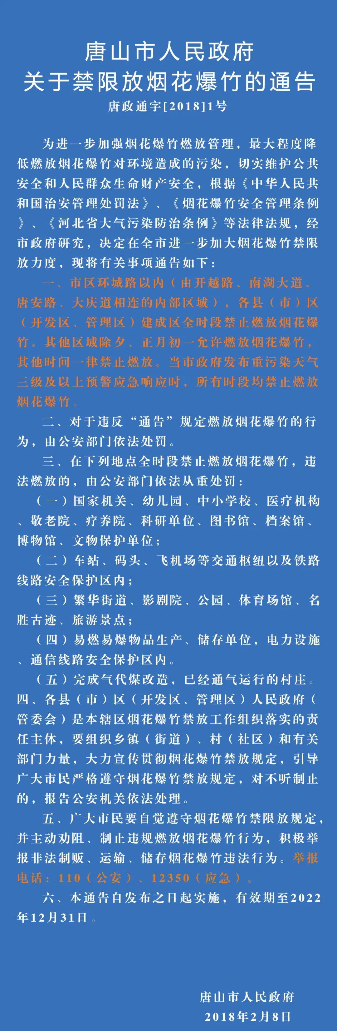 七、广大群众要自觉抵制和举报非法生产、经营、运输、储存、燃放烟花爆竹等违法行为,增强安全意识和环保意识。举报电话:110,0316-8858919。