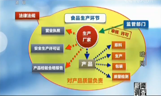按照我国食品安全监管体系的设置,食品在投入生产环节时,生产厂家需具备营业执照、该类食品的安全生产许可证、产品检验合格资质等。监管部门对厂家的资质进行审核、许可,生产厂家需要在食品的原料、生产、包装、质量检测等重要环节、按照相关的法律法规进行生产活动,最终对产品质量负责。