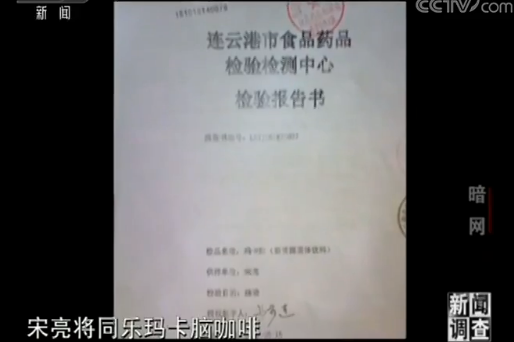 宋亮将同乐玛卡脑咖啡送到了连云港一家检验机构做有毒有害物质的靶向检验,并证实了自己的怀疑。