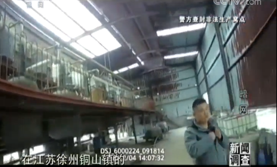 警方沿着线索寻找他达拉非原料药的生产源头,在江苏徐州铜山镇的一个废弃化工厂中,发现了一个简陋的作坊。