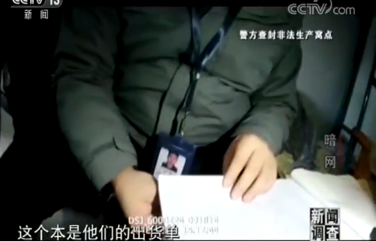 贺林:这是在他们的工人住宿的房间里面搜查的一个过程。就在这个里边找到了一些相关的笔记本记的一些东西。你看这个像这个本上面,而且这个本上面,就是他们的出货单。