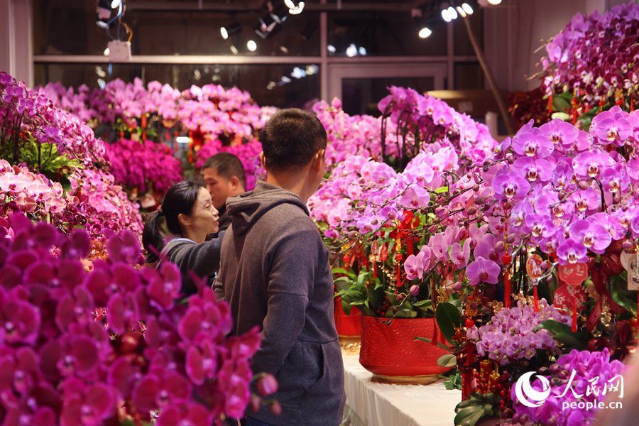 缤纷多彩的年宵花引人驻足拍照。人民网记者 陈博摄