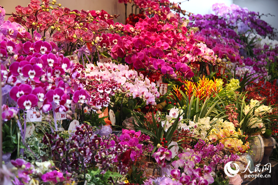 琳琅满目的年宵花层层叠叠。人民网记者 陈博摄