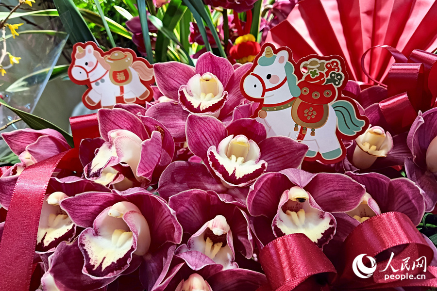 年宵花挂上马年元素小吊牌,年味十足。人民网记者 陈博摄